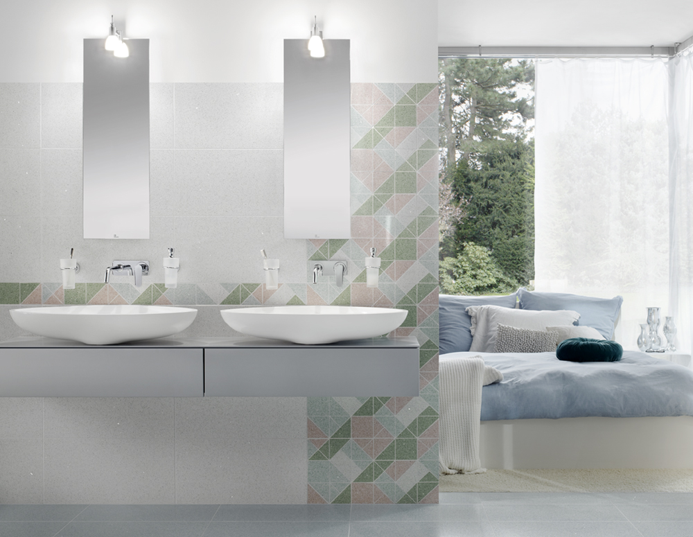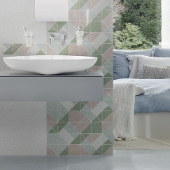 Medo Geo Aquatica vermittelt Ihnen das Urlaubsgefühl für Ihr zu Hause -die pastelligen Farben erinnern an eine Unterwasserlandschaft – holen Sie sich das Meer in ihr Bad.